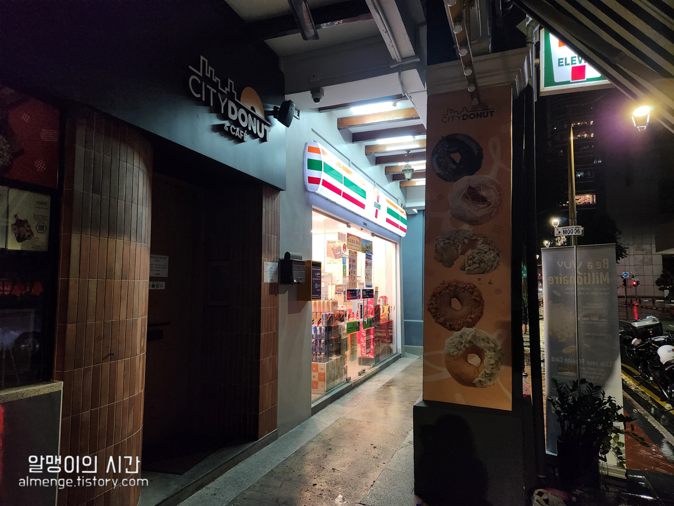 숙소 입구 오른 편엔 시티도넛&카페라는 도넛 카페와 세븐 일레븐이 있어서 새벽에도 편하게 편의점 이용 가능!