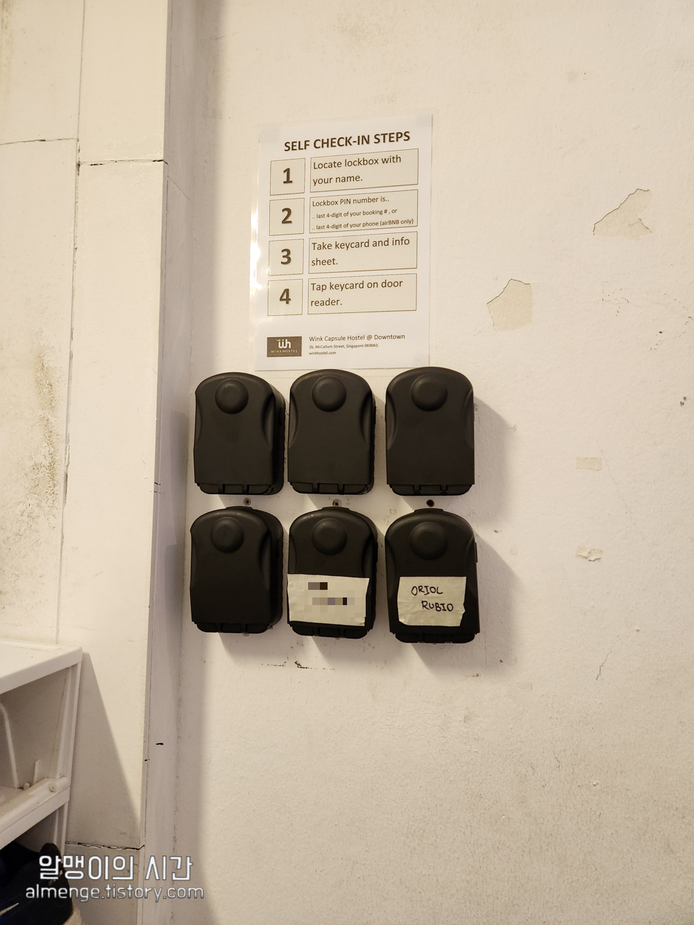 주의할 점이 싱가포르엔 윙크 호스텔이 두 곳 있어요. 예약할 때 잘 보고 예약하셔야 함. 후기보니 다른 지점으로 잘못 찾아간 분도 계시더라구요.