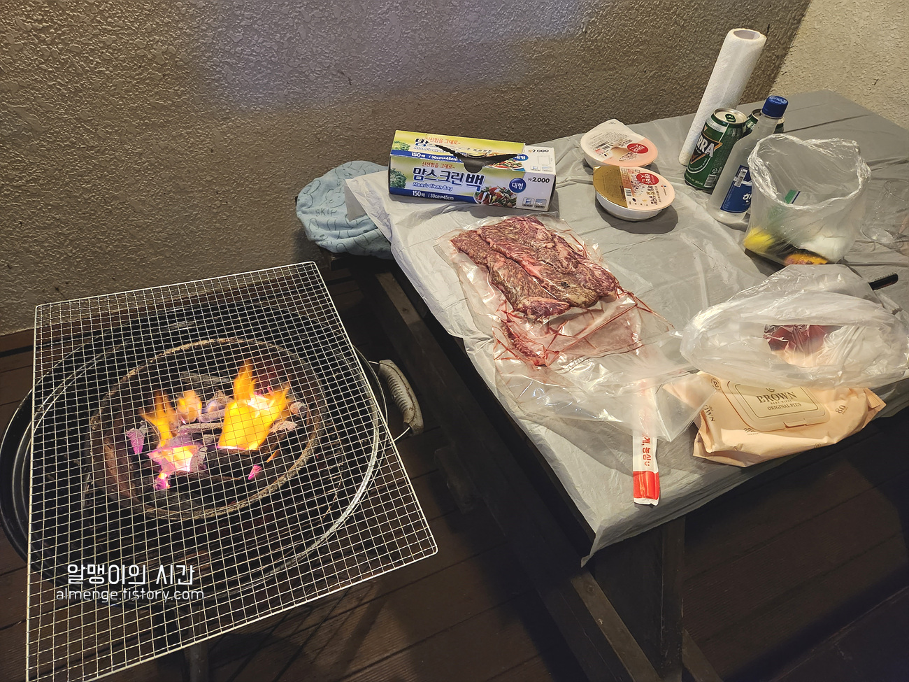 숯불 세팅은 너무 늦은 시간엔 어렵고