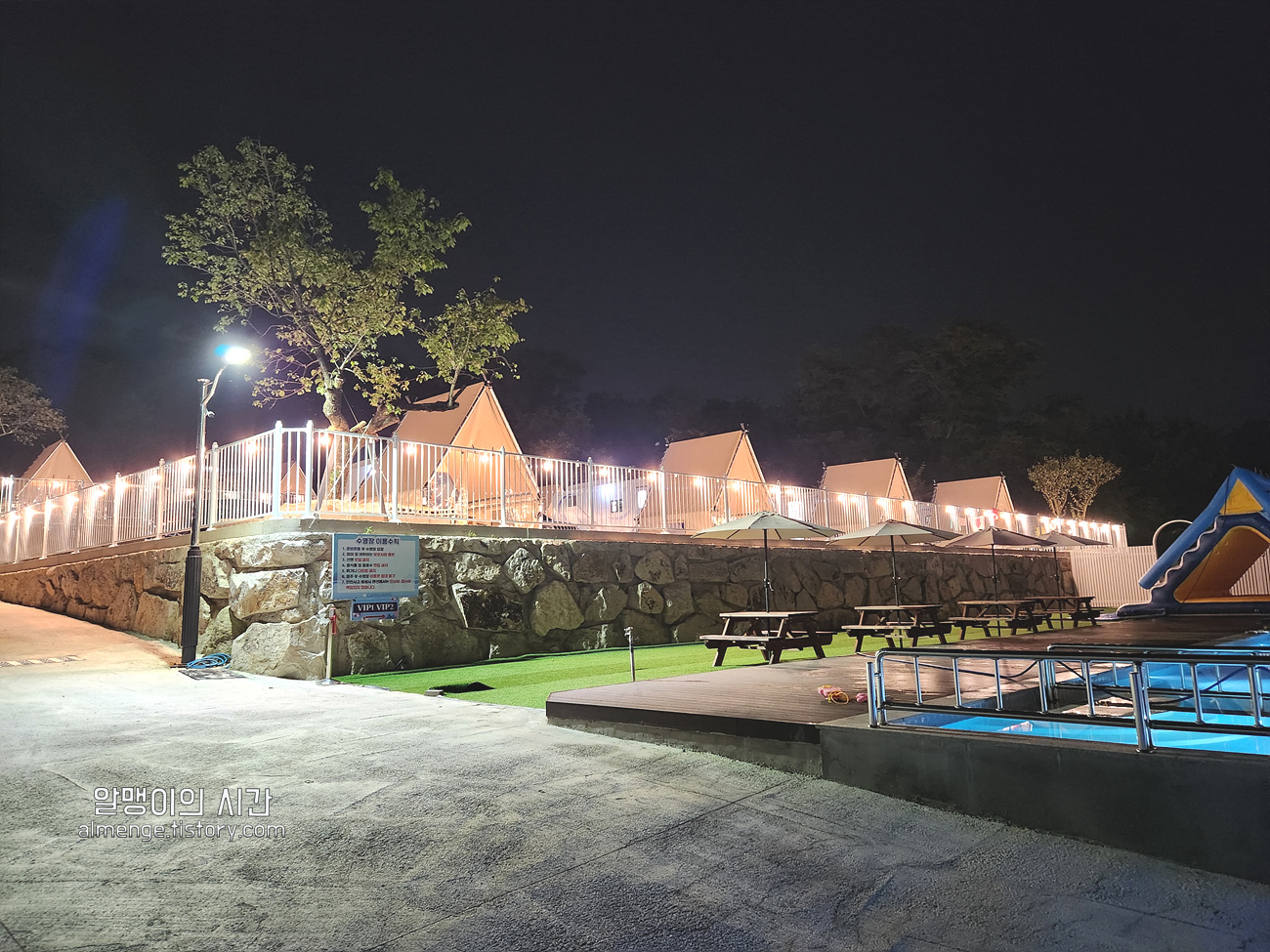 카라반 타입 숙박객들이 이용할 수 있는 공용 수영장이 있는게 특징