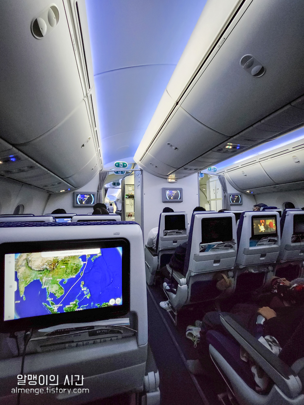 좌석은 3-3-3배열이었고 난 제일 왼쪽 열 통로자리에 앉았음.