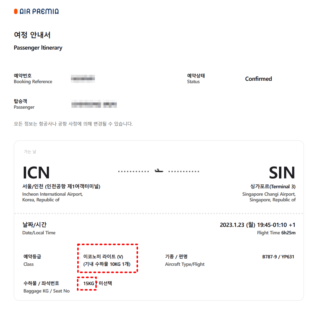 참고로 싱가포르 노선은 2023년 3월 26일자로 단항되었지만 기내 서비스와 비행기는 어차피 보잉 드림라이너 787-9로 동일하기 때문에 에어 프레미아 후기가 궁금하신 분은 이걸 보셔도 크게 지장은 없을 것 같다.