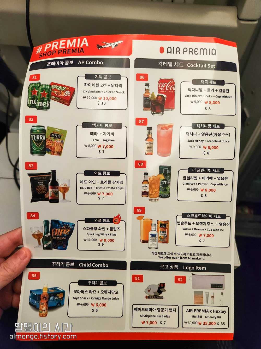 프레미아 42를 탈 경우 기내식도 이거보단 구성이 좀 더 풍성하고, 음료로 술도 선택이 가능하다고 하는데,