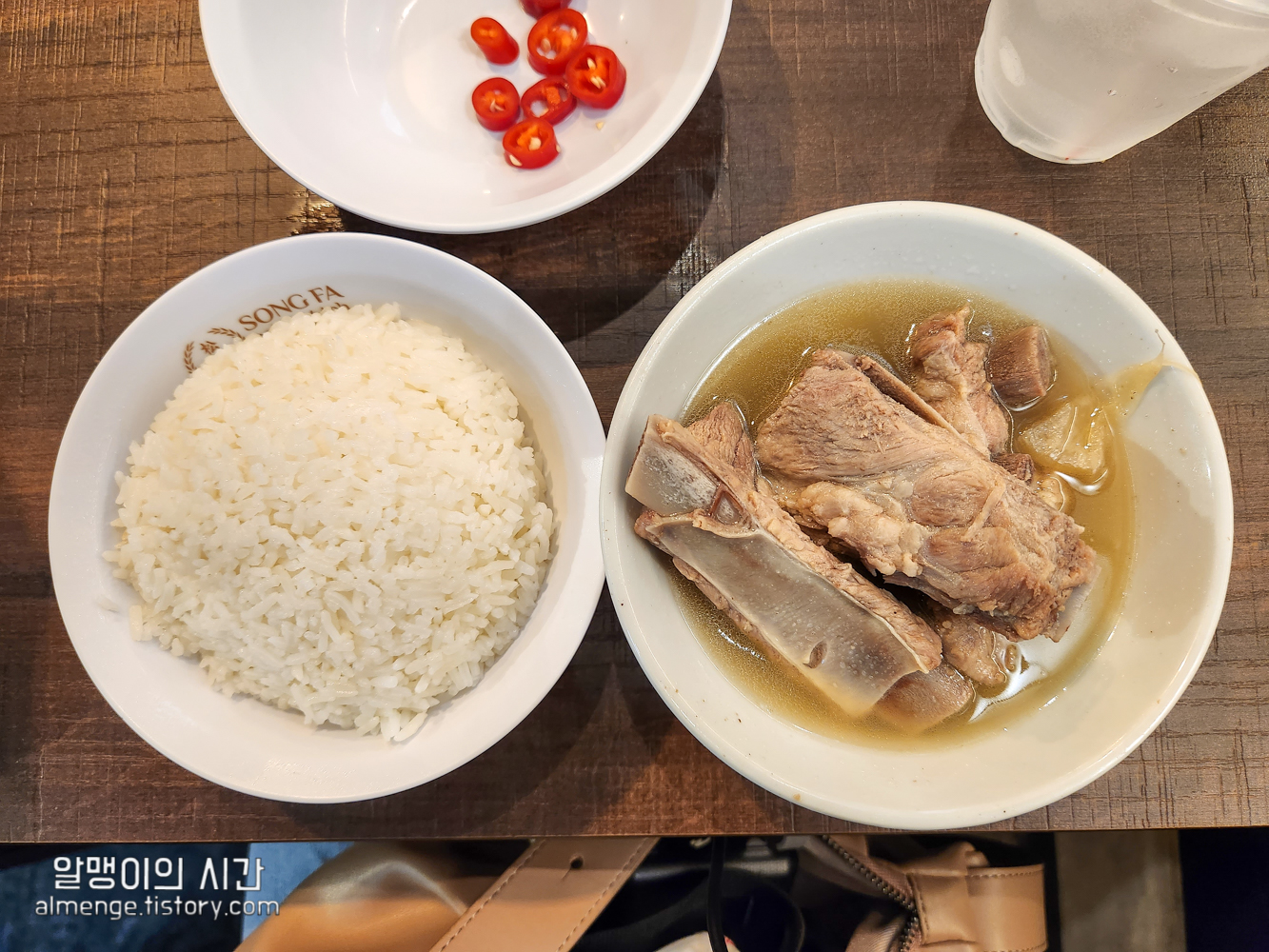 여자 혼자여서 스몰 사이즈 바쿠테(8.6 싱가폴 달러)를 시켰는데 살짝 적은 듯 적당한 양이었어요. 남성분들은 라지 사이즈 시키셔도 될듯하고, 먹고 있으면 직원분이 돌아다니며 따뜻한 육수를 계속 무료로 리필해주시기 때문에 밥이랑 같이 먹다보면 배는 불러요!