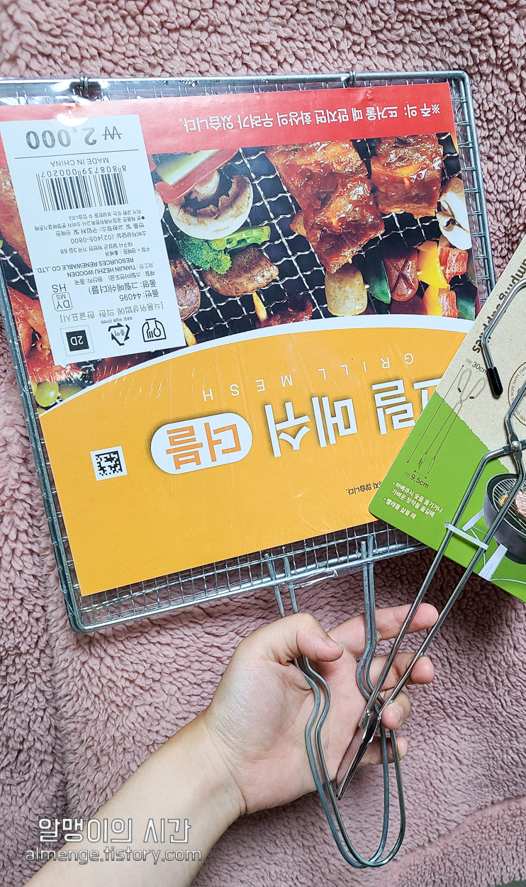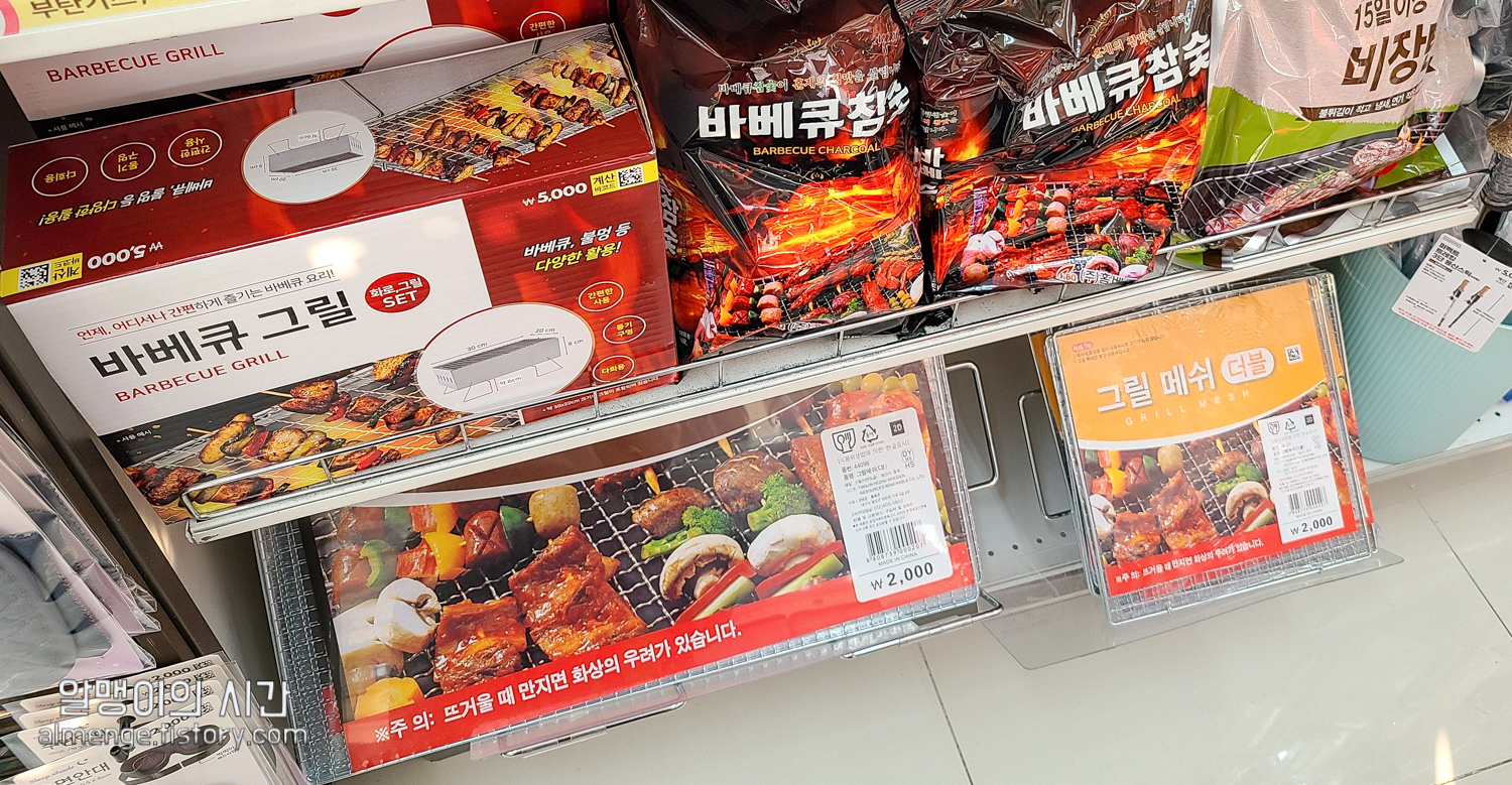 맨 위에 5000원 짜리는 그릴과 화로까지 포함된 상품, 아래 두 개는 그릴만 있는 2000원짜리 제품이에요. 저는 화로대를 가지고 있어 5000원짜리는 안 샀고