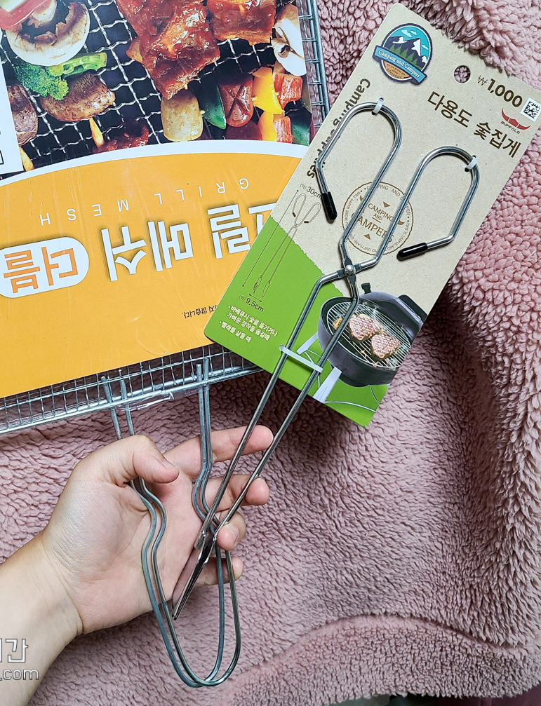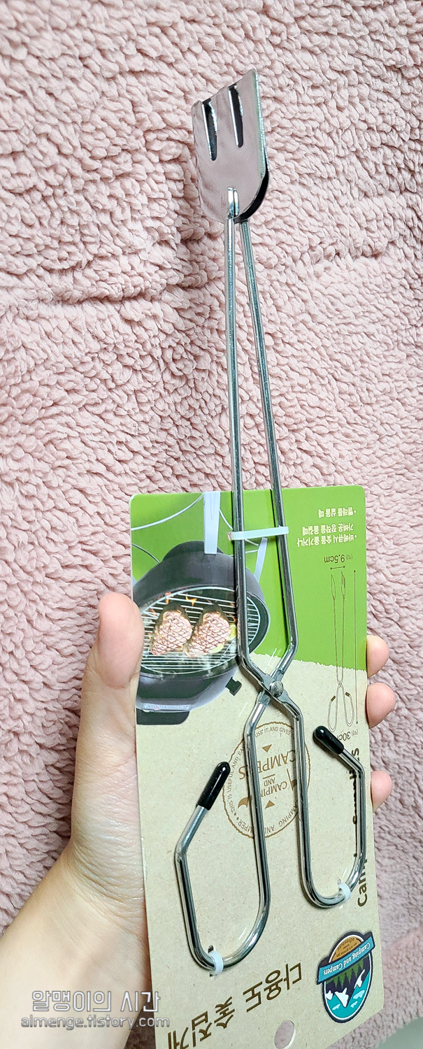 역시나 장작불 쓸 때 사용할 용도로 구입한 아이템. 가지고 있던 짤막한 집게를 활활 타오르는 장작불 위에서 쓰기엔 너무 위험한 것 같아 캠핑장 화로대에서 사용하려고 샀어요. 1000원이라 정말 부담 없는 가격!