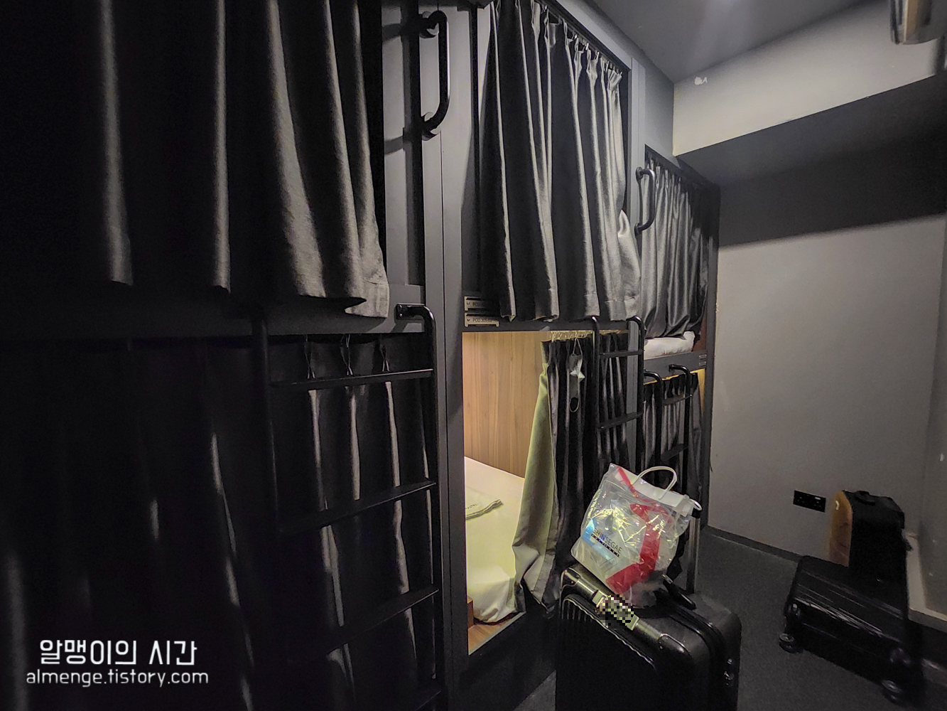 관뚜껑 대신 커튼으로 관짝을 외부 시선으로부터 차단 가능한 점도 아늑 포인트 ㅎㅎㅎ 캡슐 안에 있을 때는 커튼을 치고 있다보니 옆 침대나 윗침대에 누가 있는지 얼굴도 못보고 2박을 보냈다.