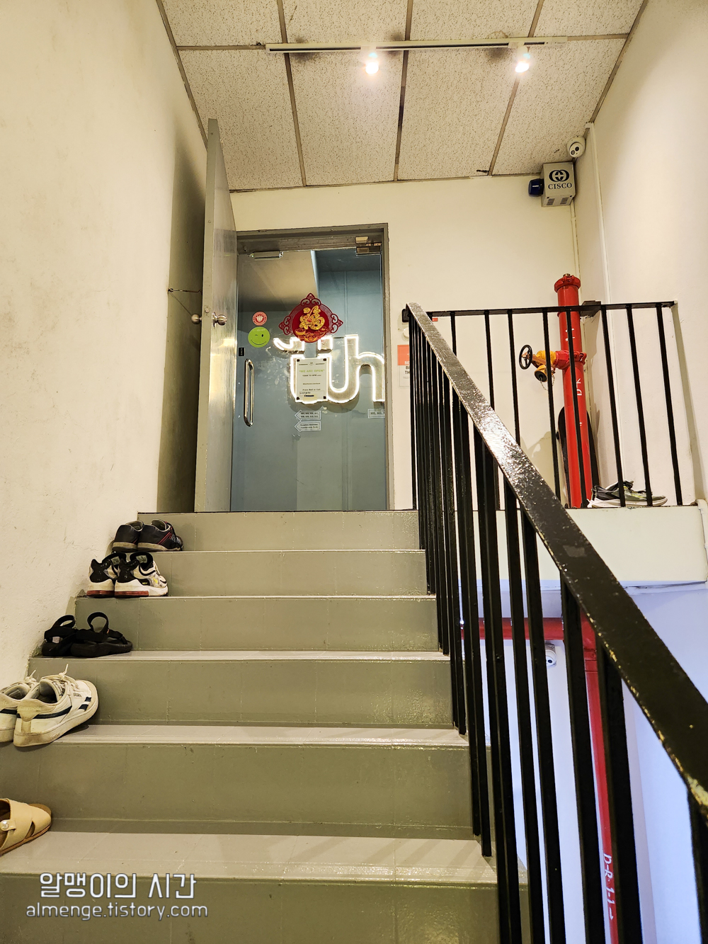 다들 잠든 후의 숙소는 한없이 조용했고, 리셉션조차 마감된 시간이기에 숙소에서 알려준 방법대로 셀프 체크인 하고 방키 수령! 다른 여행자들이 계단에 쪼로미 놔둔 신발들이 귀엽다 ㅎㅎ