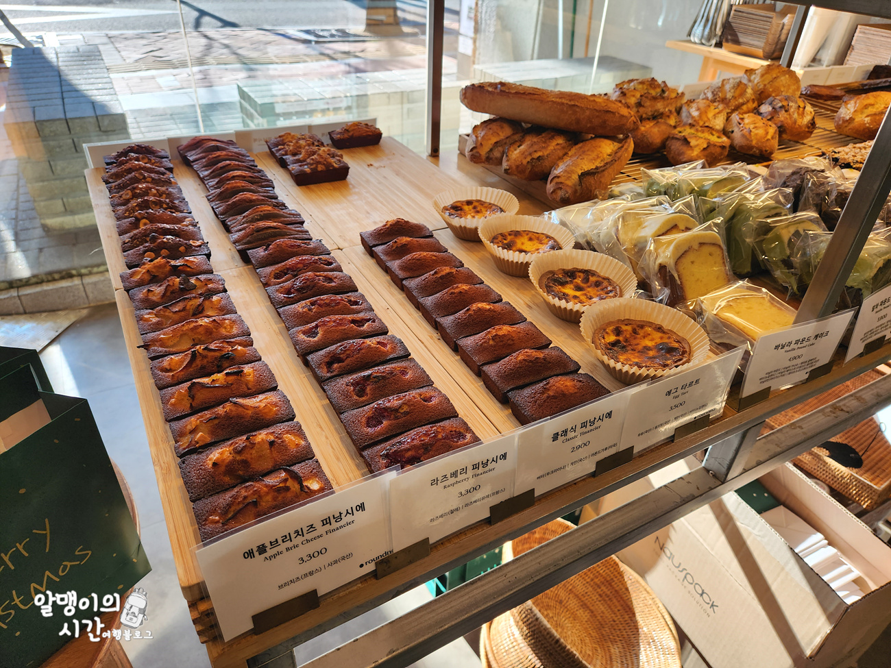 자리 잡아놓자마자 신나서는 빵이랑 디저트부터 보러 갔어요. 휘낭시에(피낭시에) 종류만 7종류가 있을 만큼 휘낭시에에 진심인 듯 했음 ㅎㅎ