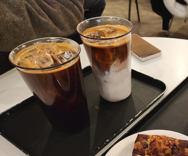 커피는 아아랑 아이스 라떼를 주문했는데 맛있었어요.
