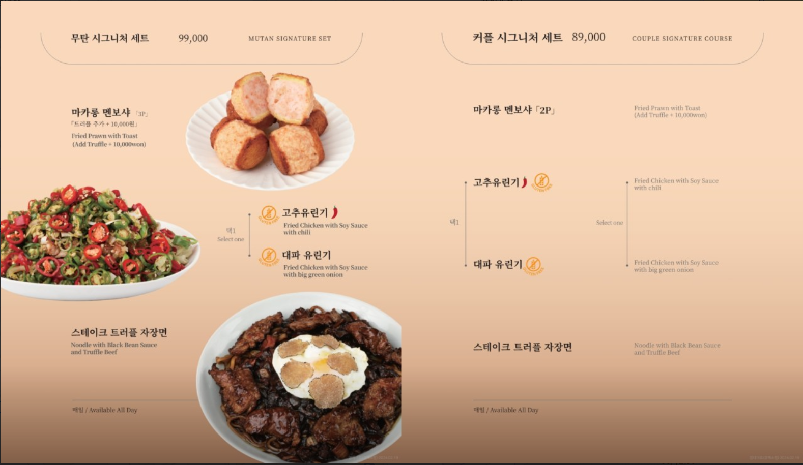 시그니처 메뉴의 경우 이렇게 세트 메뉴가 있어서 2명이서 가서 시그니처 메뉴를 맛보고 싶으면 '커플 시그니처 세트'를 시키면 딱이에요.