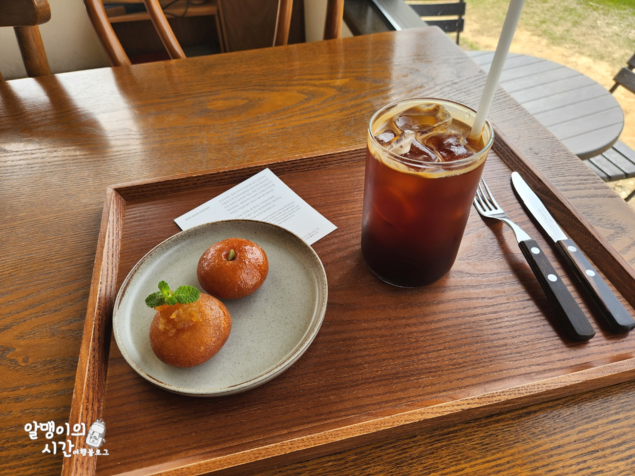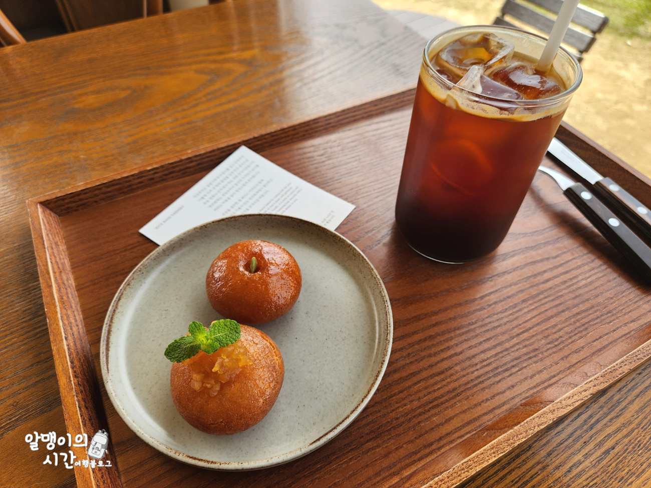 우선 커피는 산미 없는 묵직하고 고소한 맛의 아메리카노라 산미 있는 커피 싫어하는 사람도 무난하게 먹을 수 있는 맛이었습니당. 아아를 시키기 잘 했다고 느낀게 커피랑 함께 먹어야 개성주악이 더 맛있더라구요.