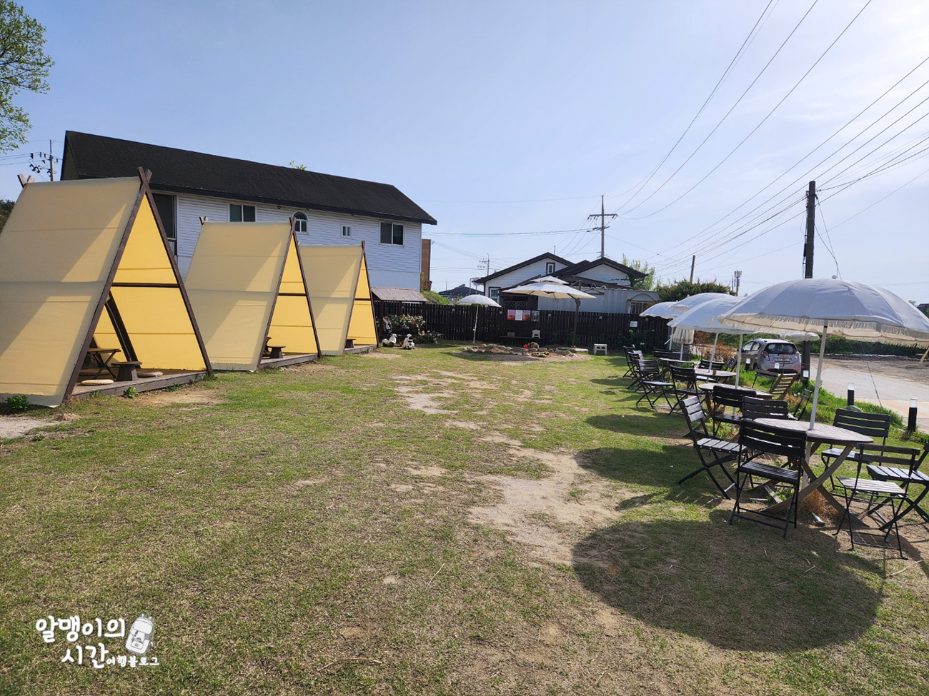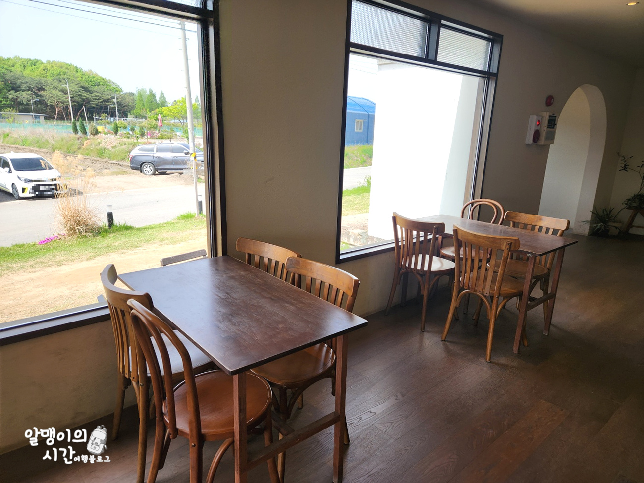 주차는 위 사진처럼 카페 길건너 자갈 깔린 땅에 하시면 되는데요. 사진 양 옆으로도 공간이 쫌 더 있어서 대략 10대 정도는 가능해보였어요. 근데 여기가 시골이어서 여기 자리 없으면 다른 곳에 요령껏 대도 될 것 같았음 ㅎㅎ
