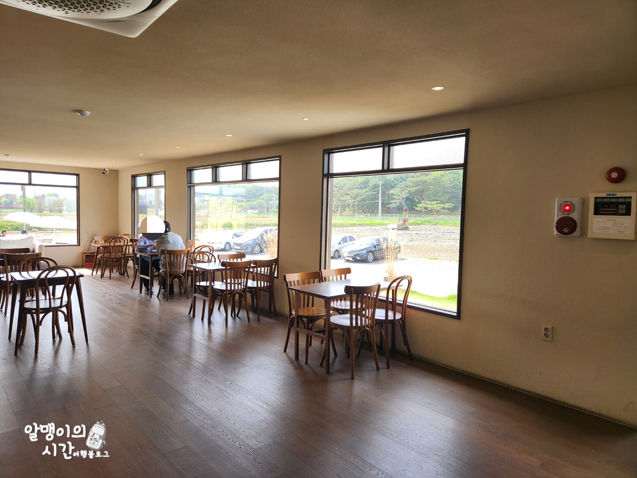 주차 공간 뒤로는 한창 밭갈이 중인 논이 뙇 ㅎㅎㅎ 아직 벼 심기 전이라 휑한데 여름이 되면 초록초록한 라이스뷰, 가을엔 황금빛 논뷰를 볼 수 있을 것 같아요.