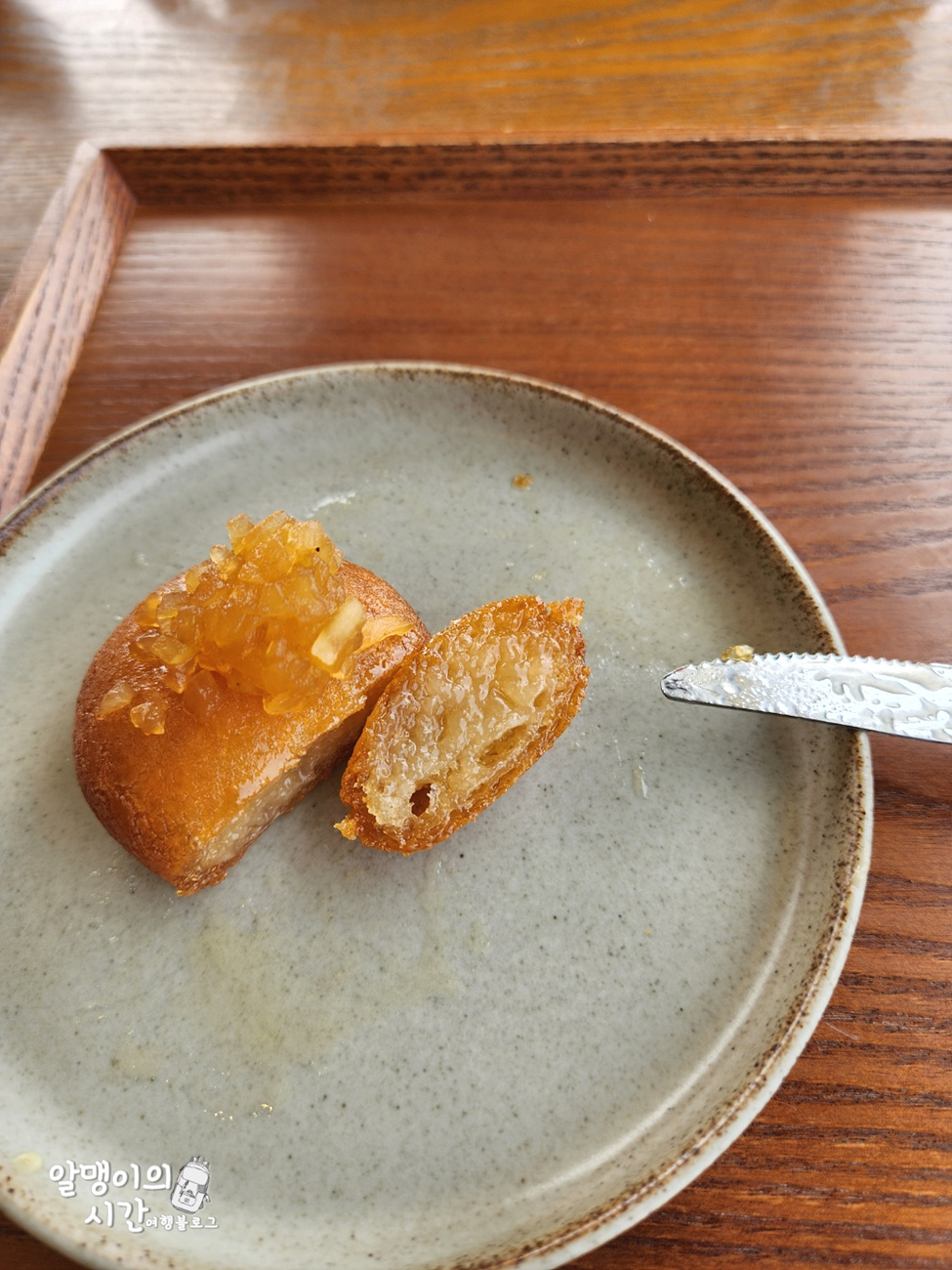 겉부분은 바삭과 단단 그 중간즈음의 느낌이었고, 속은 찹쌀이 들어가서 쫄깃한 식감. 한입 베어물면 빠삭하고 쫄깃하고, 즙청과 약간의 기름이 입안에서 팡 터지면서 과하지 않은 기분 좋은 단맛이 나요. 단맛이 과하지 않아 좋았어요.