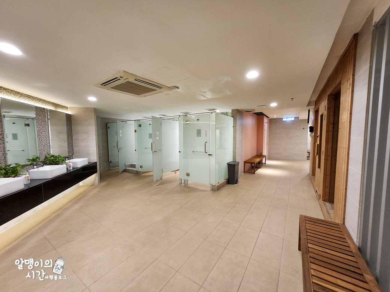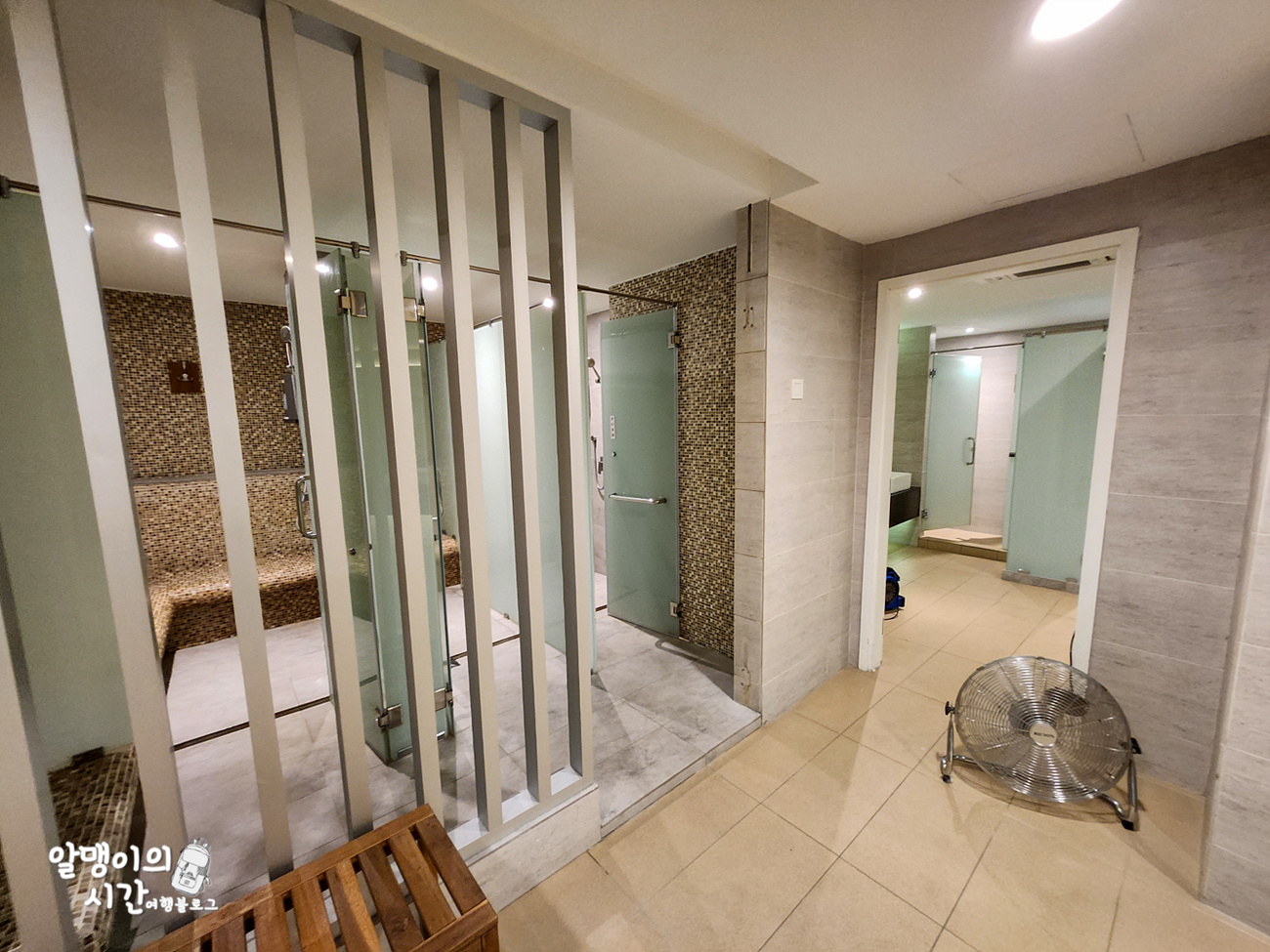 샤워부스도 대량 7~8개 가량 있었던 듯 해요. 수압은 세다 못해 아픈 정도로 잘 나와서 항상 저녁에 핫샤워하고 개운하게 잤네요.