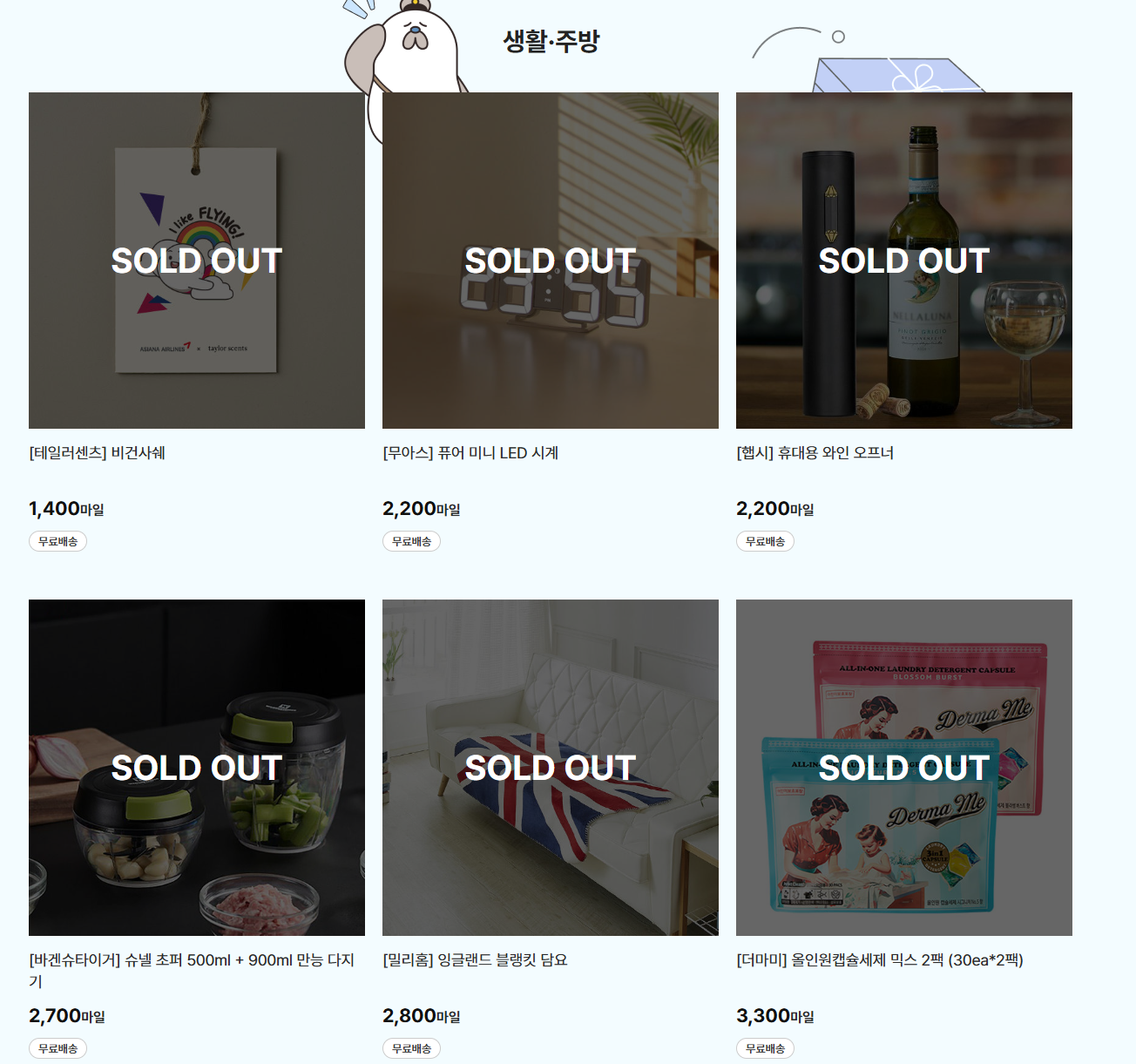 올 품절 크리 ㅋㅋㅋㅋ ㅠㅠㅠ 대한항공 합병시 마일리지 개편 방안이 나올 때 마일리지 가치가 떨어질 것을 우려한 사람들이 마일리지몰을 다 털어서 이런 것 같음.