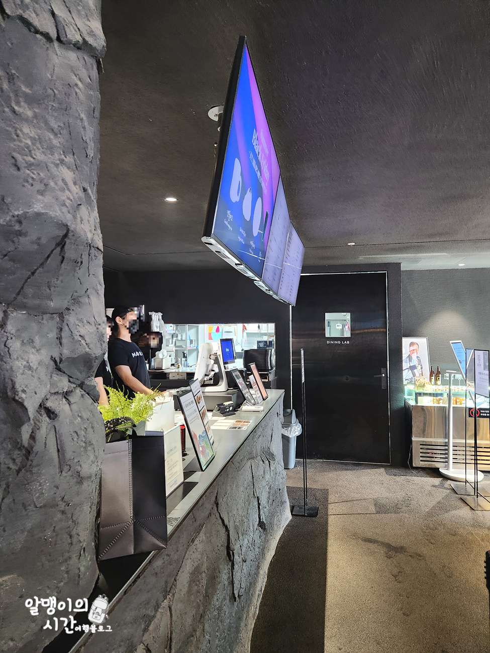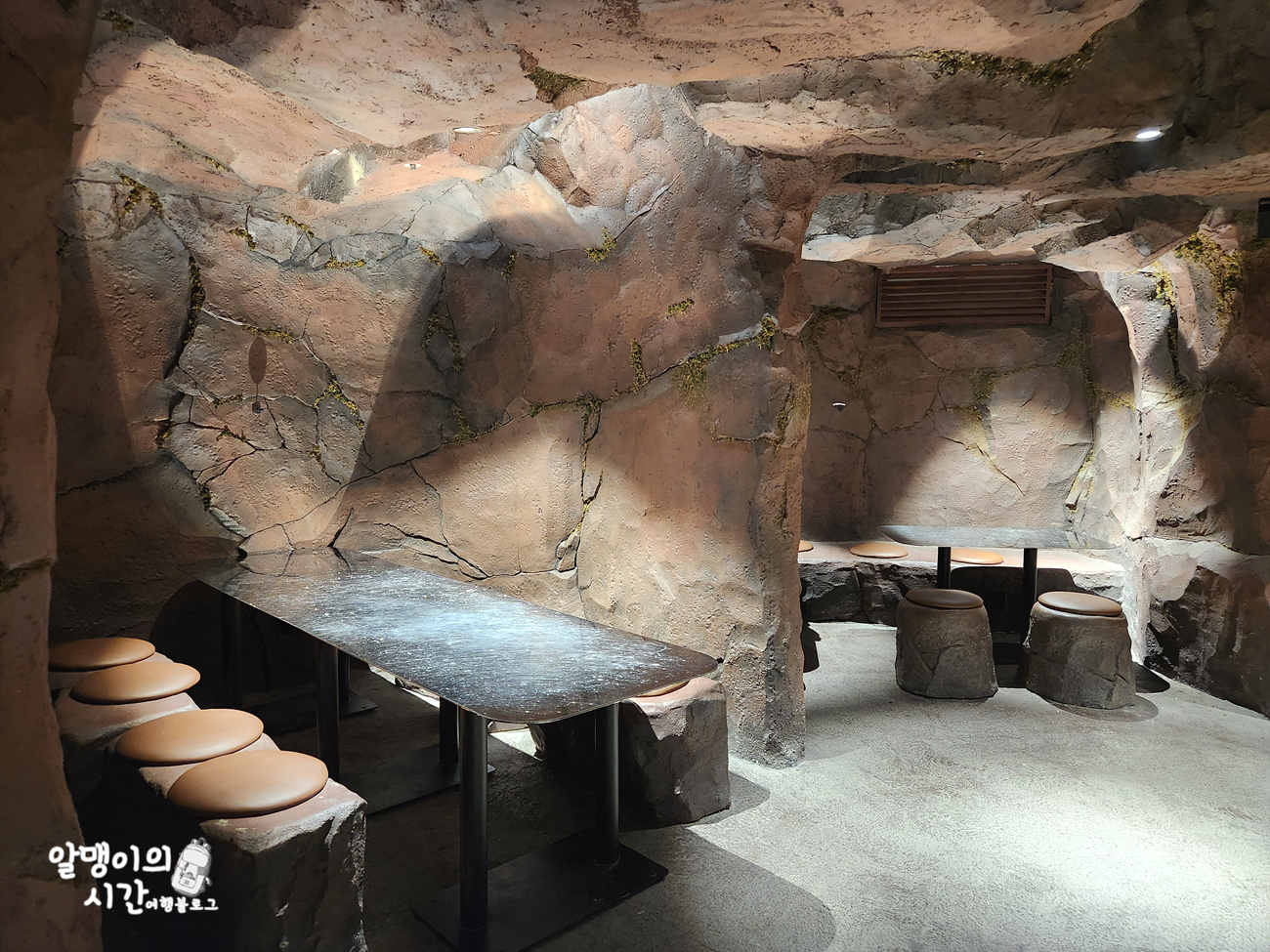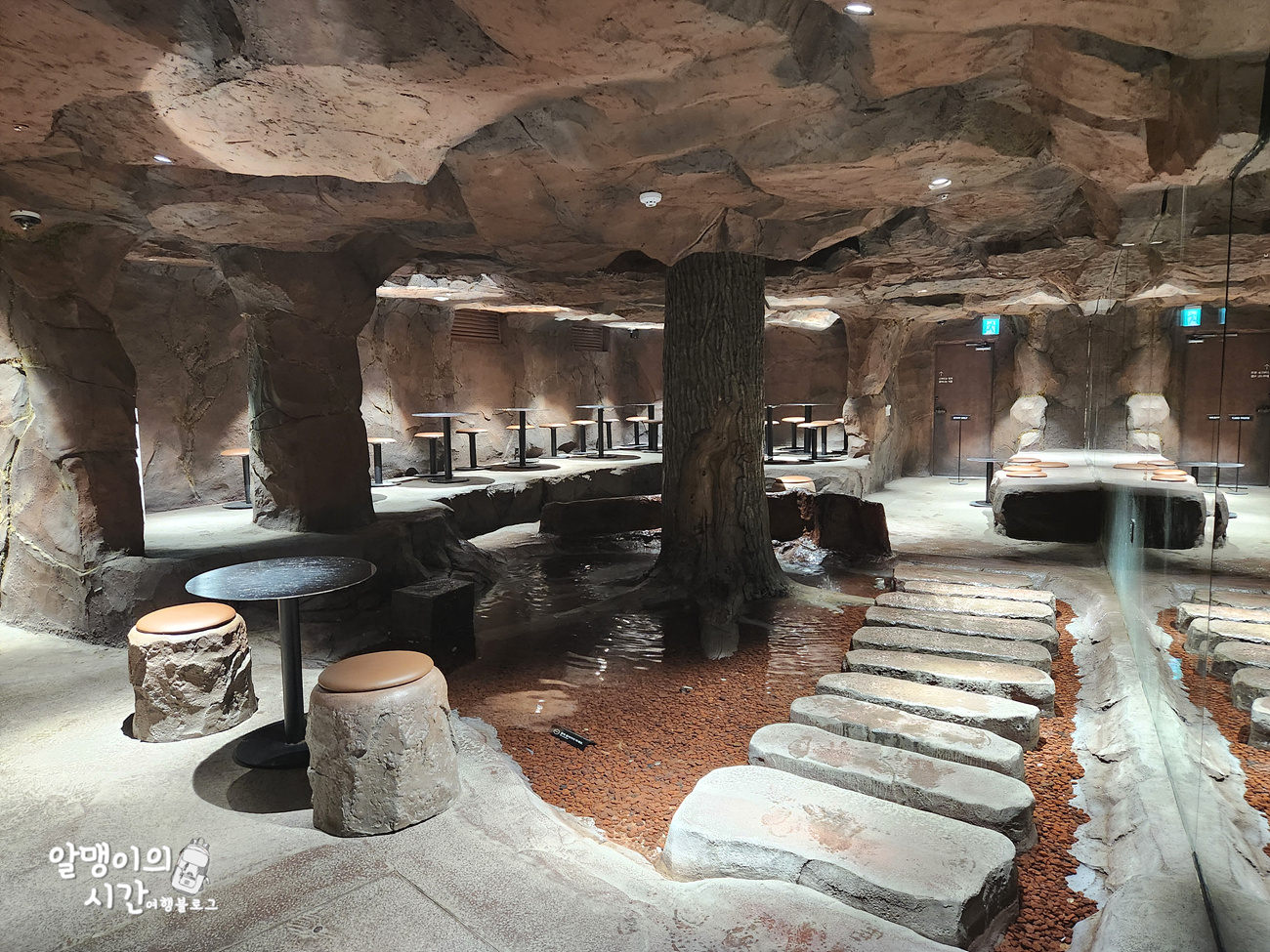 지하 1층은 물이 흐르는 동굴 컨셉이어서 특이했어요. 카페 층층을 어쩜 이렇게 다르고 특색있게 인테리어 해놨는지 정말 신기하더라구요.