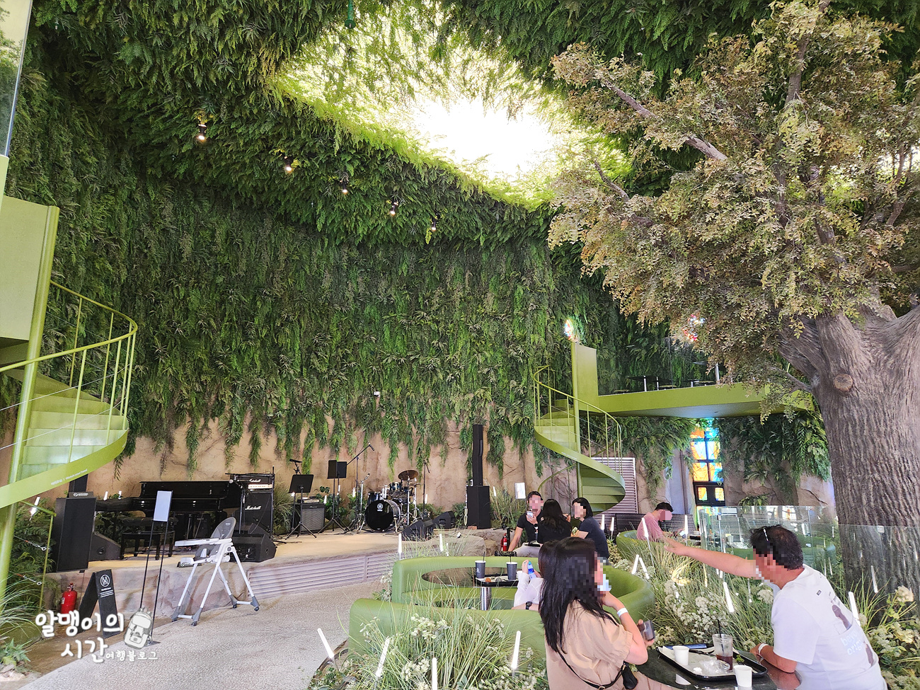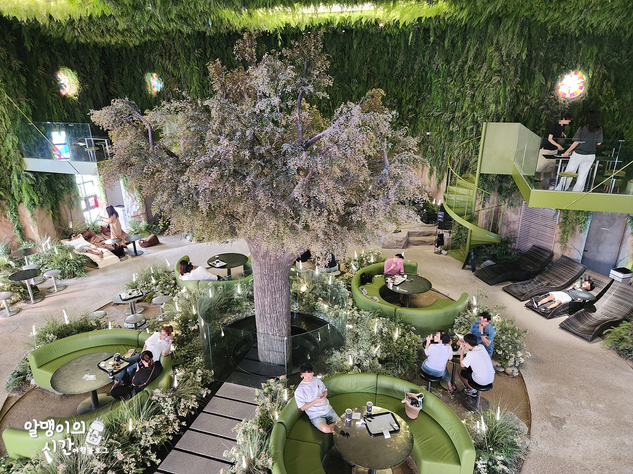 가운데 있는 나무가 포토존이라 여기서 사진 남기는 분들이 많이 보였습니다. 나무 양 옆 뒷쪽에는 나선형 계단을 타고 올라가는 2.5층 같은 아늑한 공간도 있어요.
