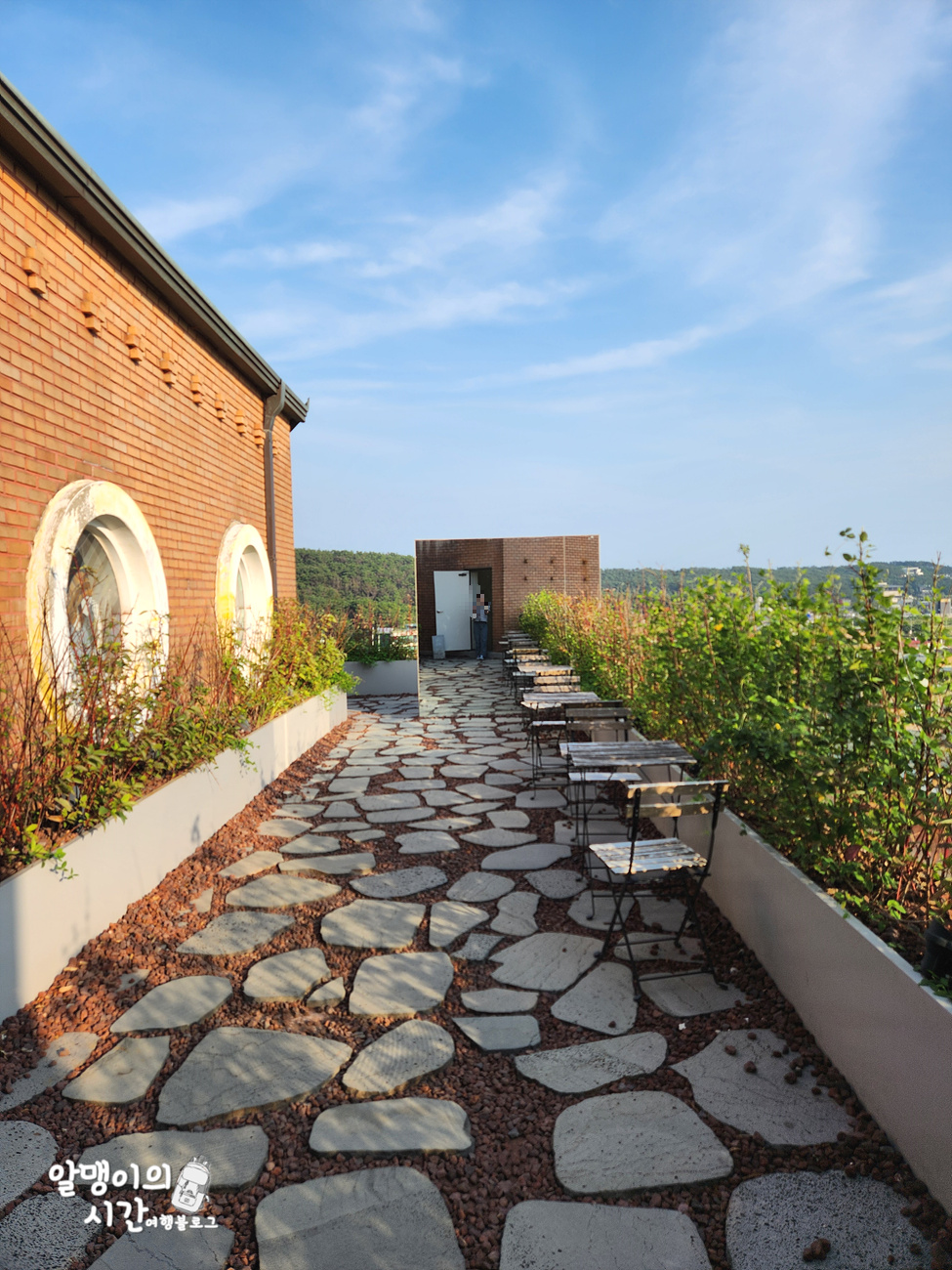 루프탑 공간도 둘러봤어요. 가까이는 아니지만 저 멀리 서해 바다도 보이네요.