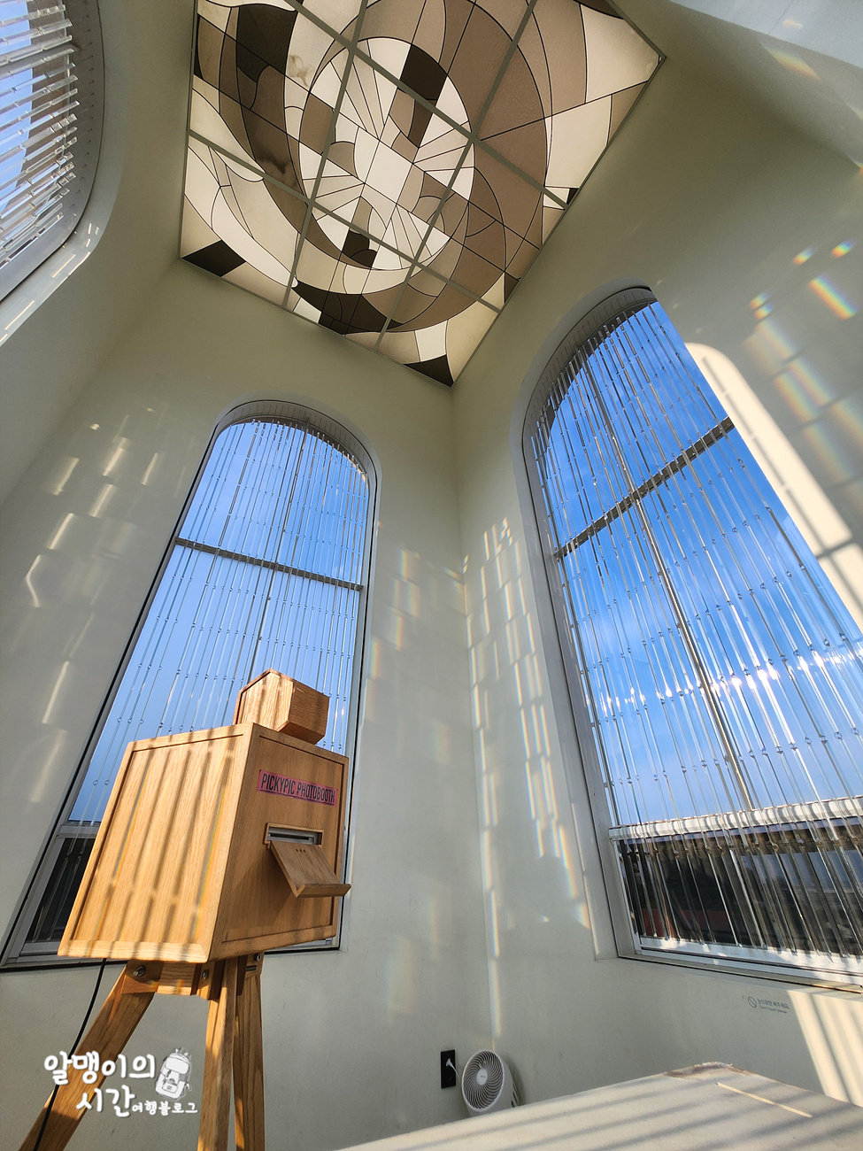 첨탑엔 이렇게 포토부스가 있어 사진을 찍을 수 있게 해놨네요. 한 번 슥 보고 다시 내려와