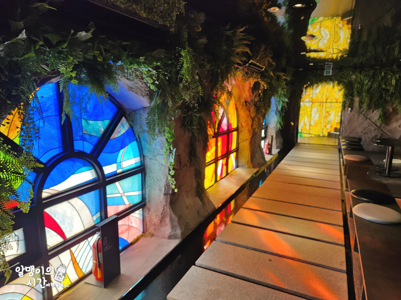 사진으로도 보셨다시피 스테인드 글라스가 주는 느낌, 예전의 공간이 생각나지 않을 만큼 특색 있게 꾸며진 내부 모습이 인상적이었습니다. 왜 복합문화공간이라고 부르는지 카페를 둘러보니 이해가 되더라구요.