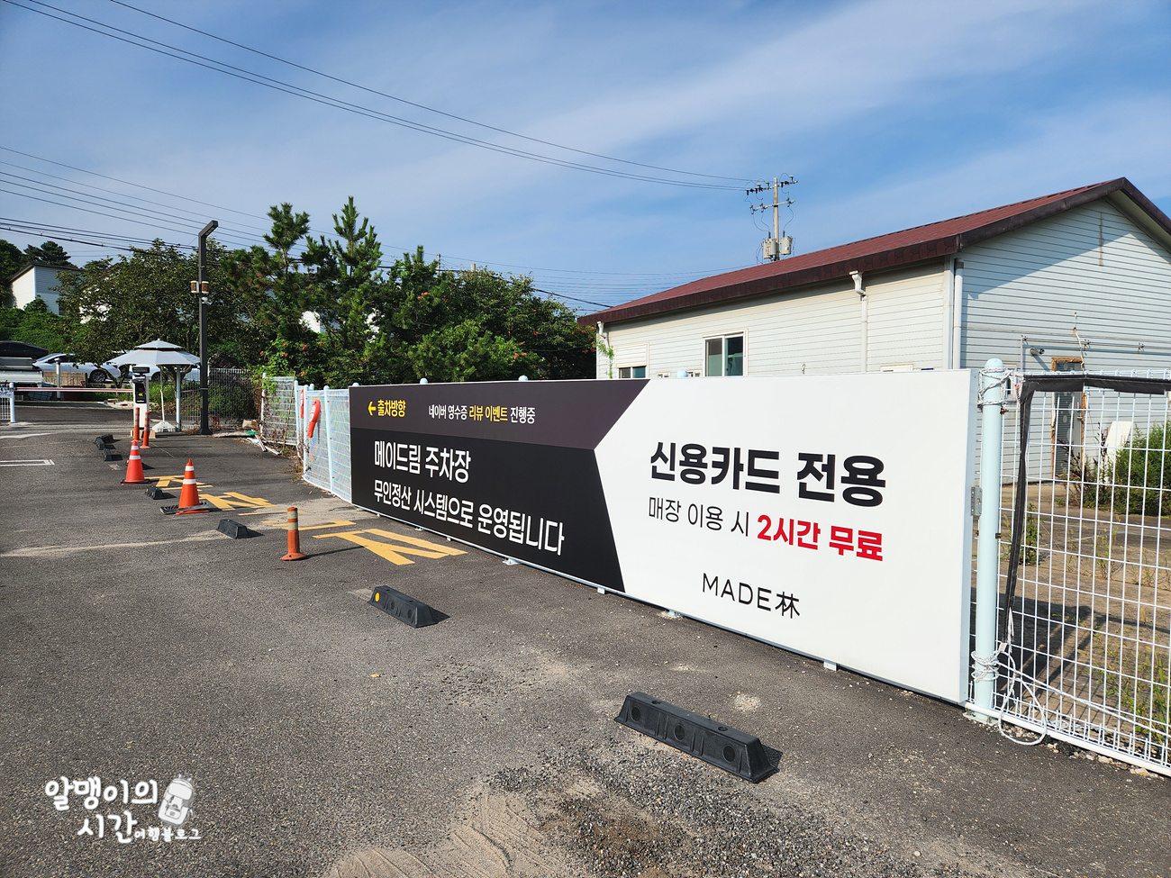 카페 앞에 꽤 넓은 전용 주차장이 있어요. 주차장 모습은 아래 사진을 참고하시구요.