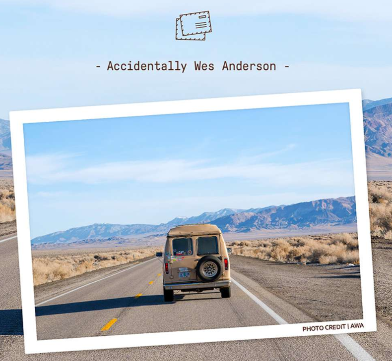 현실에서 우연히 마주한 웨스 앤더슨 감독('그랜드 부다페스트 호텔' 감독)의 영화 속 한 장면 같은 장소를 포착해 Accidentally Wes Anderson (AWA)라는 인스타그램 계정에 공유했고, 전 세계 팔로워들이 제보해온 세계 각지의 사진들도 함께 게시하며 유명해졌어요. 현재 팔로워수는 200만명 정도라고 하네요.