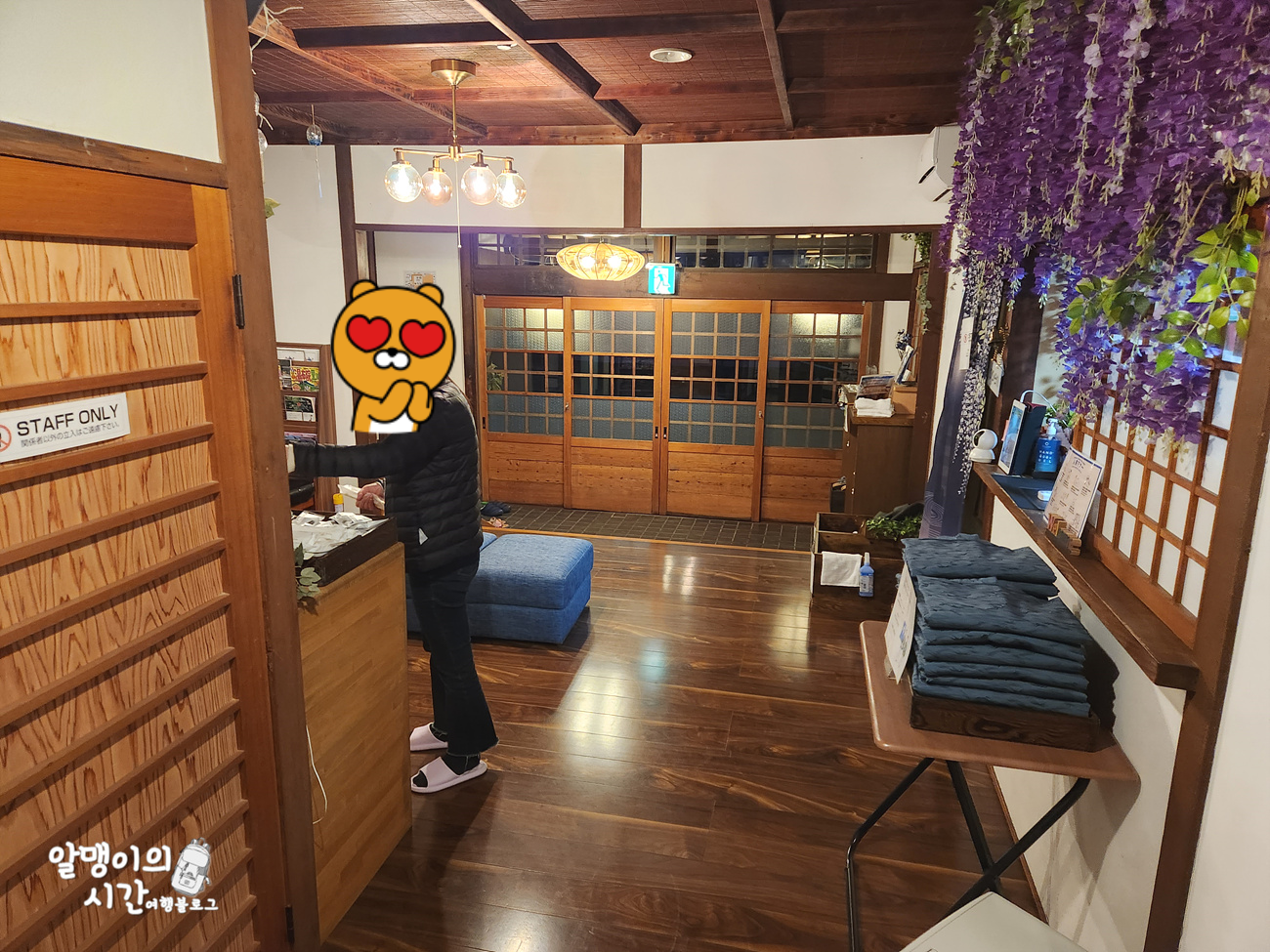 그리고는 저를 직접 데리고 다니며 숙소 내 공용공간, 온천, 화장실 등 곳곳을 안내해주신 후 방 앞까지 안내해주심! 스탭분이 아주 친절하셨음.