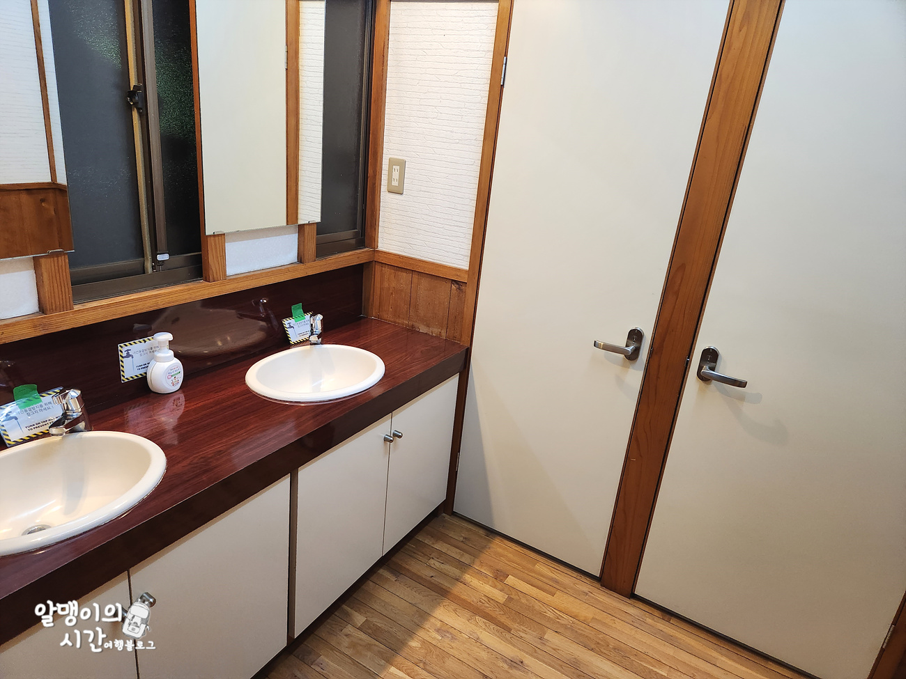 오히려 좋았던 점은 세면대랑 변기가 두 개씩 있어서 화장실 기다릴 필요 없는게 큰 장점이었어요. 물론 방 안에 있었다면 더 좋았겠지만, 방 밖에 있어도 불편한 점은 없었습니다.
