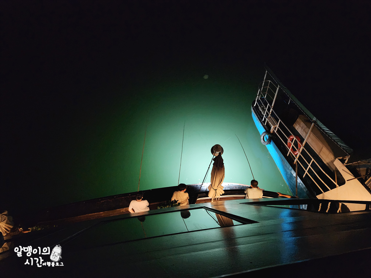 저녁 8시 즈음 1층 갑판에 서서 낚시하는데 실제로 오징어를 낚는 사람은 거의 없는 듯 했음. 오징어 낚시라고 해서 거창한 건 아니고 고냥 요 정도 ㅎㅎㅎ 역시나 다른 크루즈에서도 똑같이 이 프로그램을 운영하고 있어요. 그냥 소소한 재미 삼아 참여하는 프로그램!