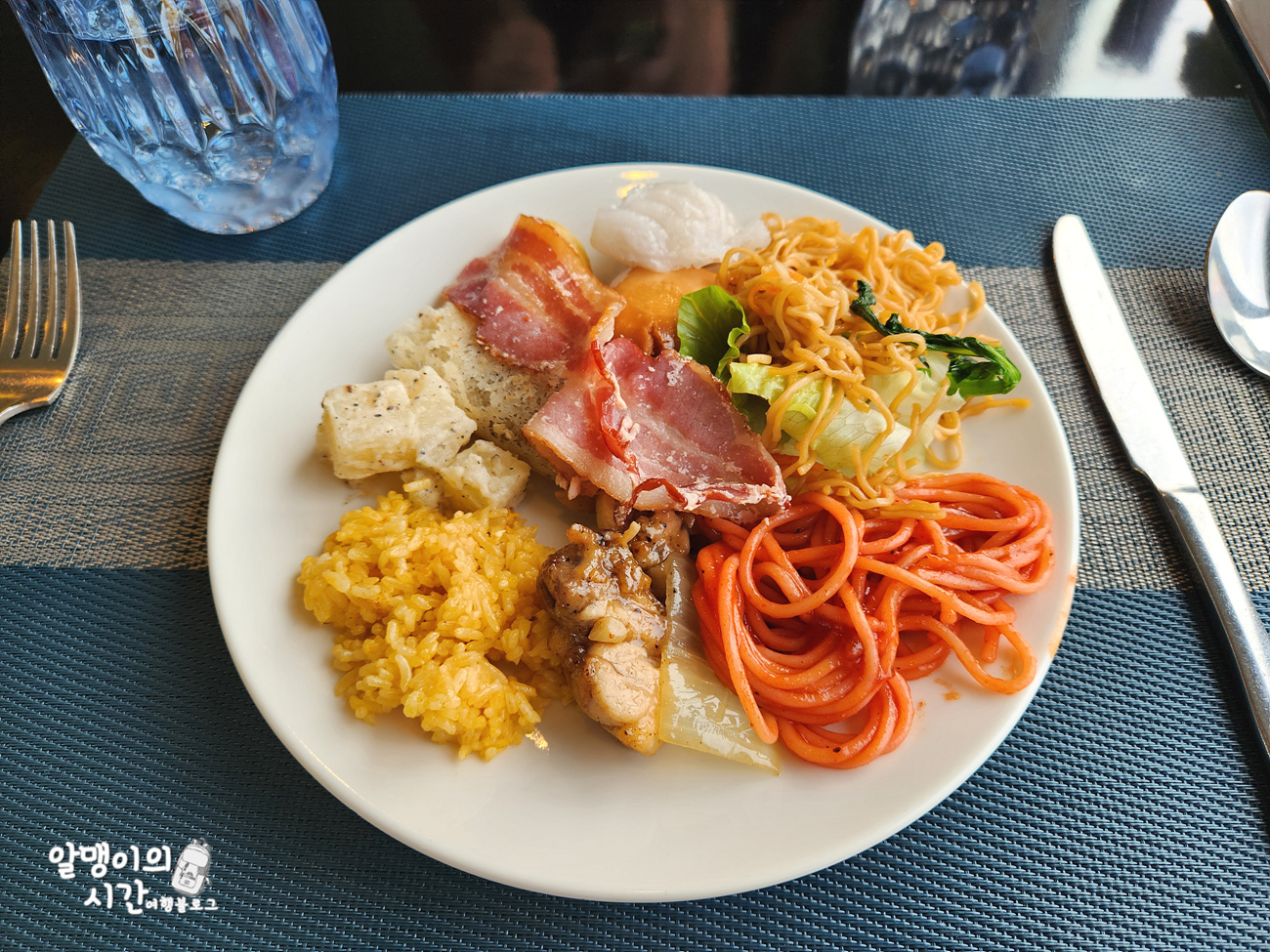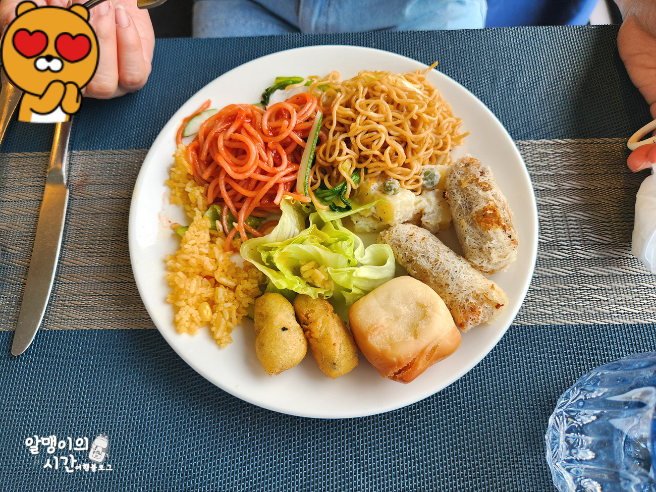 대략 20가지 정도되는 뷔페가 차려 집니다. 다 먹으면 바로 채워줬어요. 음식들은 외국인 입맛에 맞춘 맛이다보니 무난하게 먹을 만 했어요.