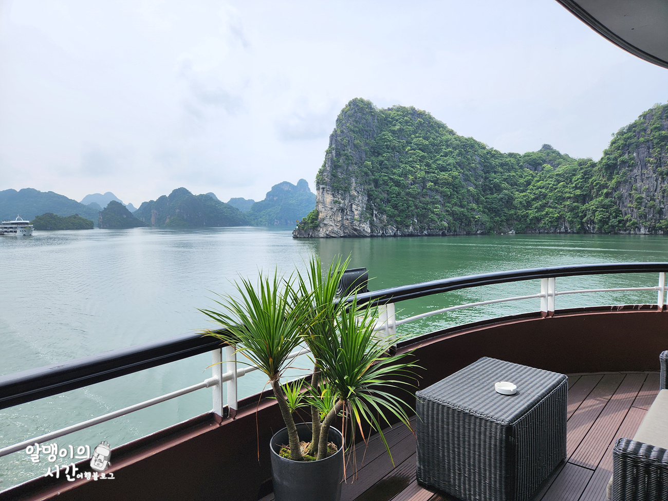 발코니에서 본 하롱베이 풍경. 하롱베이 풍경은 사진으로 보는 것 보다 실물로 보는게 훨씬 멋져요. 여행 전에 인터넷에서 사진만 봤을 땐 이거이거 단양팔경이랑 비슷한데 뭐 굳이 1박 2일 크루즈씩이나...? 라고 생각했는데 막상 가보니 사진이 실물을 영 못 담더라구요. 괜히 유네스코 세계 문화 유산이 아니라는 걸!
