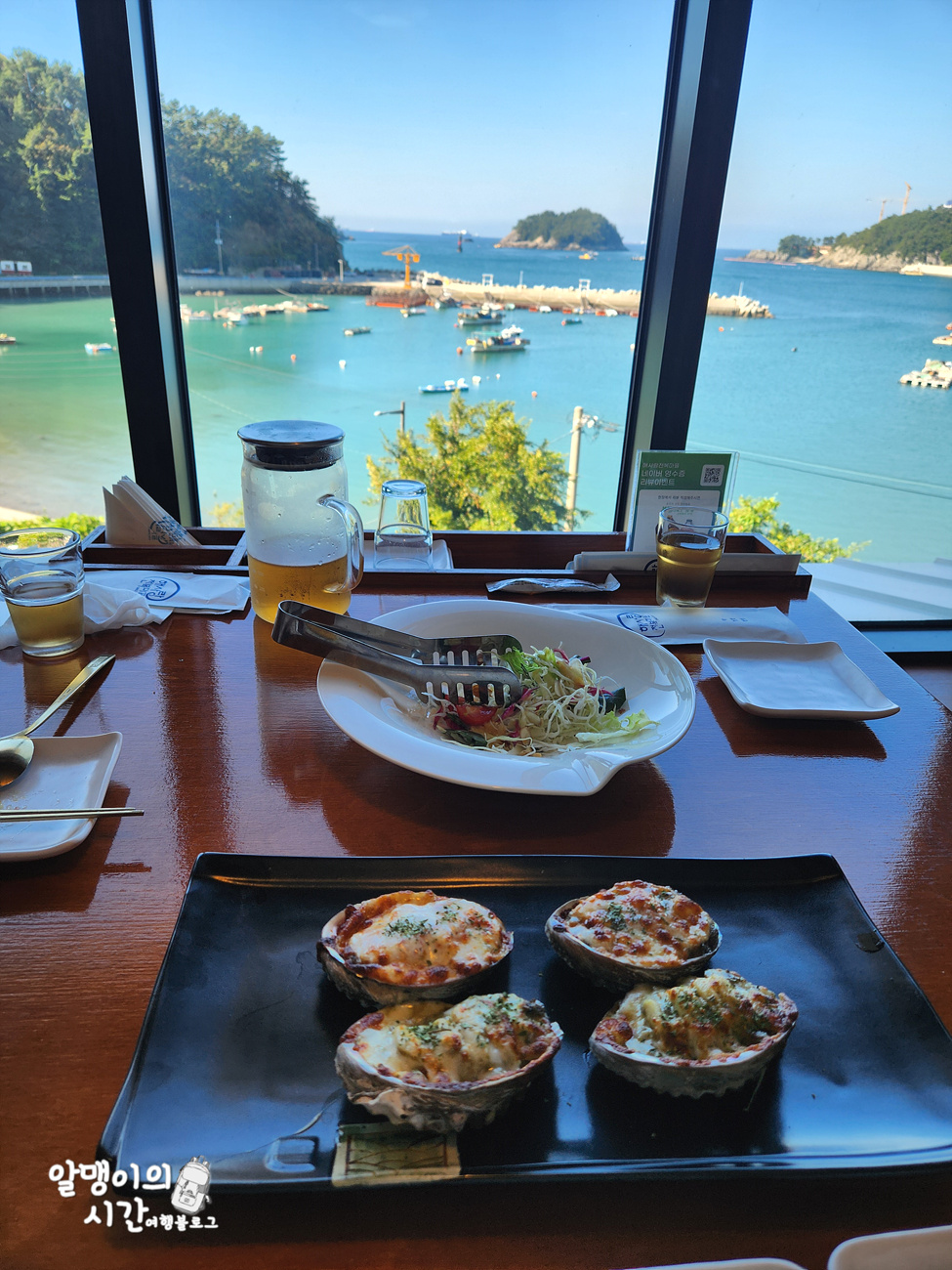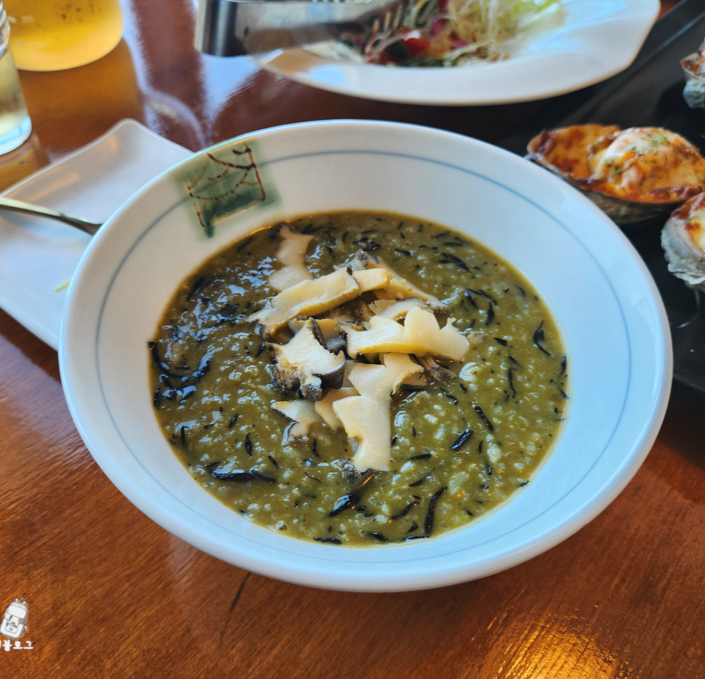 일행 중에 위장병 난 사람이 있어(;;) 순한 음식 찾다가 아침 9시부터 문여는 해사랑 전복마을 남해 미조항 본점에서 톳 전복죽과 치즈전복구이로 아침식사를 했는데, 오션뷰 통창 너머로 보이는 미조항 풍경도 좋았지만, 먹었던 톳 전복죽이 진짜 맛있고 세트에 나온 2가지맛 치즈전복구이도 맛있어서 음식도 만족스러웠어요. 알고보니 블루리본을 꽤나 많이 받은 식당이었음