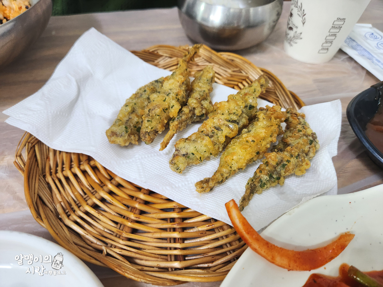 세트메뉴로 주문하면 멸치회무침+멸치쌈밥+멸치튀김을 함께 맛볼 수 있어 다른 테이블에서도 세트메뉴를 많이 먹더라구요. 제일 기대했던 멸치쌈밥은 사실 쏘쏘했고, 기대하지 않았던 멸치회무침이 정말 맛있더라구요. 밥 비벼먹으면 굿굿. 메뉴 자체가 소주각이었는데 운전해야 해서 술은 패스 ㅠㅠ 멸치는 비리지 않고 신선했어요.